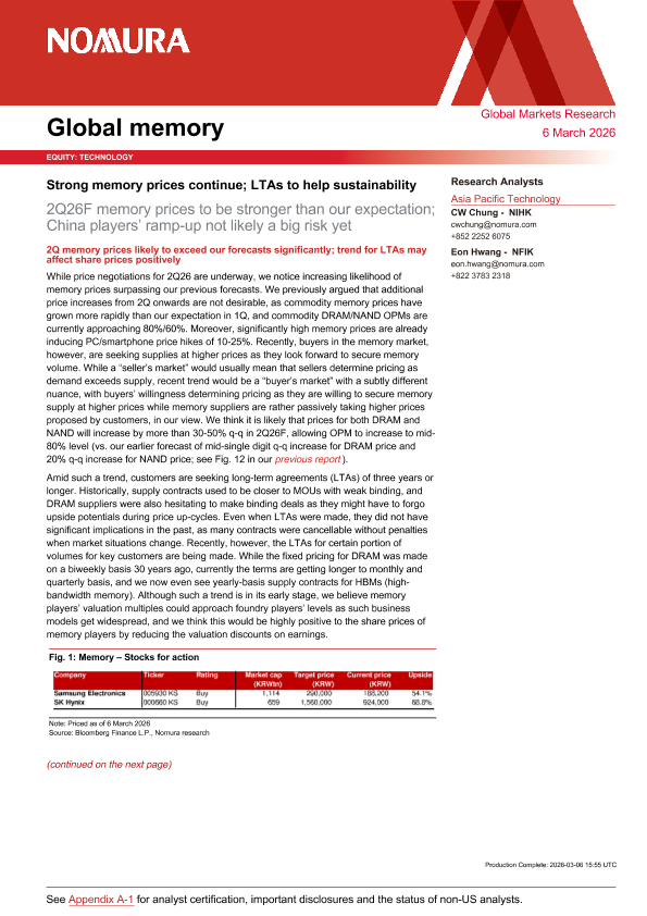 【Nomura】【2026】内存价格持续走强;长期协议助力可持续性-13页