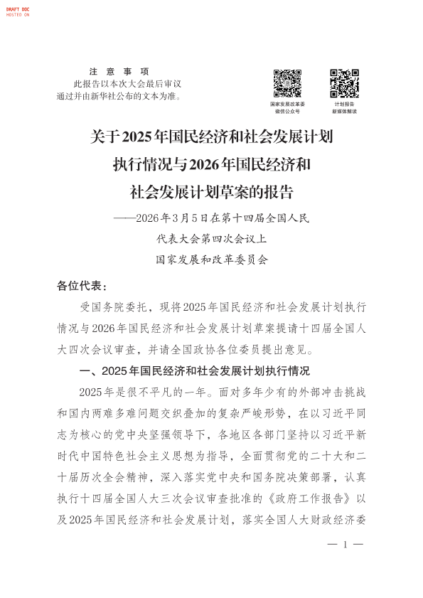 【国家发展和改革委员会】【2026】2025年国民经济和社会发展计划执行情况与2026年国民经济和社会发展计划草案的报告-92页