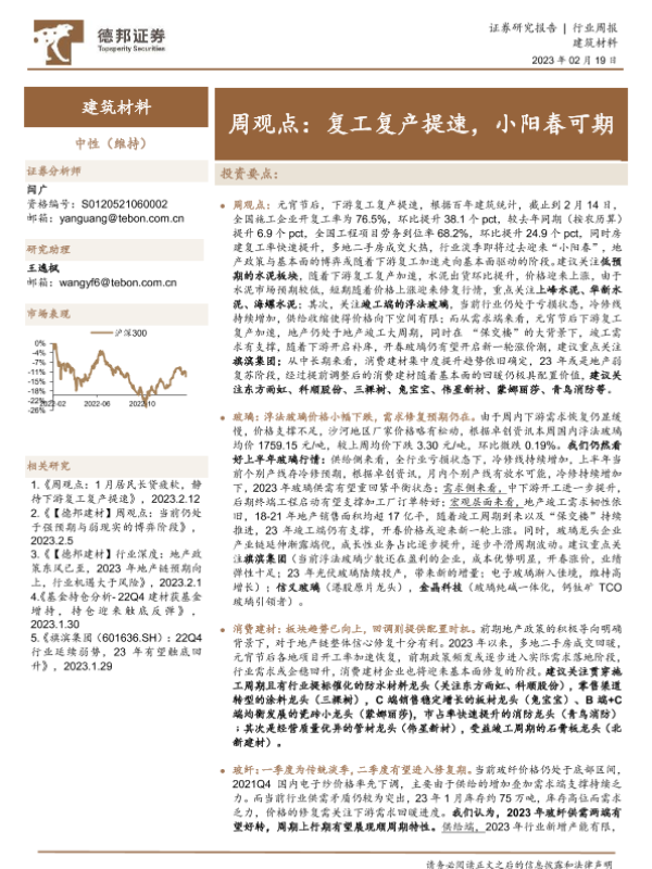 【德邦证券】【20230219】建筑材料行业周观点:复工复产提速,小阳春可期-31页