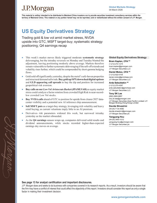 【J.P. Morgan】【202603】U.S. Equity Derivatives Strategy Trading gold and low vol amid market stress, NVDA upside into GTC, MSFT target-buy; systematic strategy positioning; Q4 earnings recap-19页