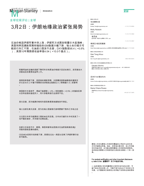 【Morgan Stanley】【202403】全球宏观评论_3月2日伊朗地缘政治紧张局势-13页