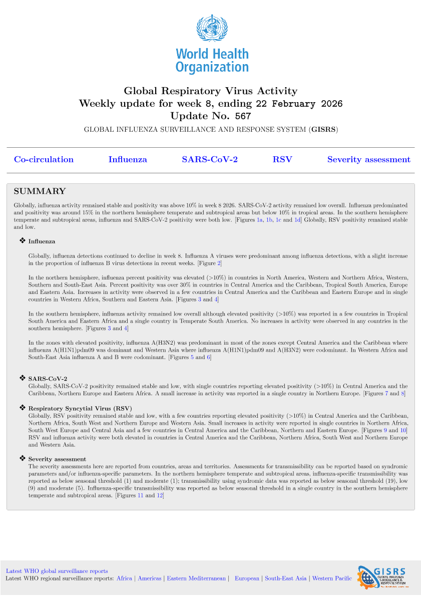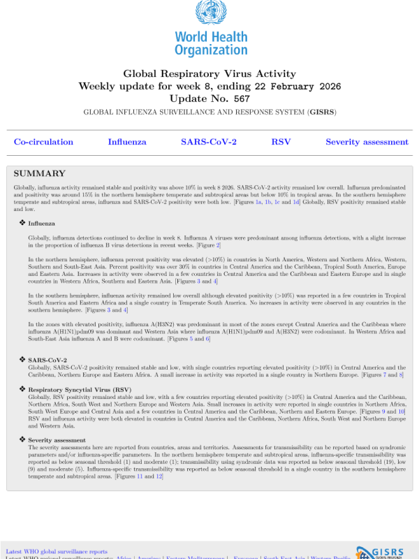 【世界卫生组织】【2026】Global Respiratory Virus Activity weekly update No 567 (week 2026-08)-5页