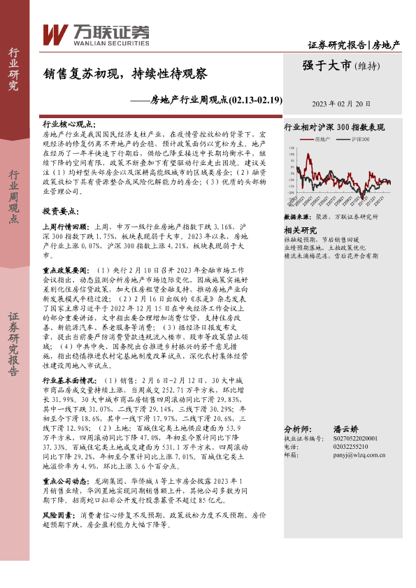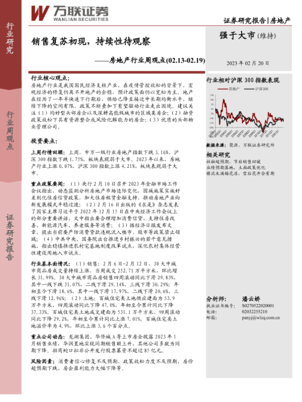 【万联证券】【20230220】房地产行业周观点:销售复苏初现,持续性待观察-19页