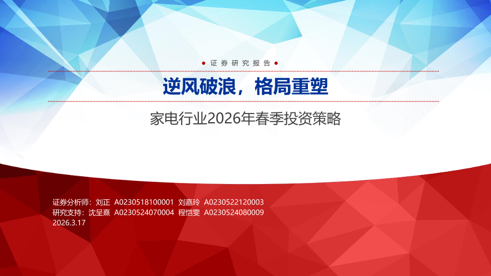 【申万宏源】【202603】家电行业2026年春季投资策略:逆风破浪,格局重塑-53页