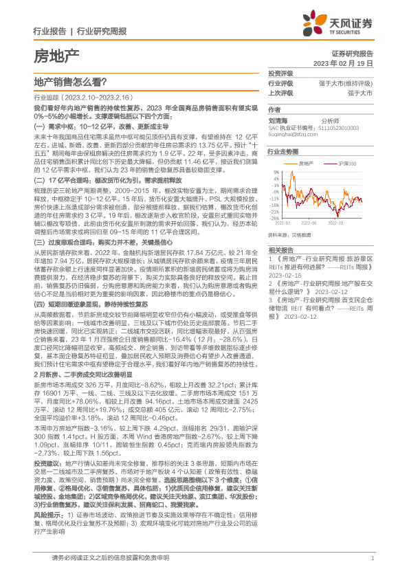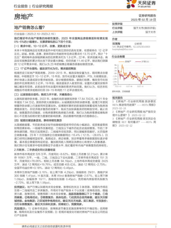 【天风证券】【20230219】房地产行业研究周报:地产销售怎么看?-18页