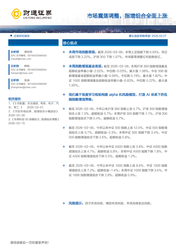【财通证券】【202603】市场震荡调整,指增组合全面上涨-10页