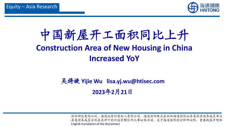 【海通证券】【20230221】中国新屋开工面积同比上升-28页