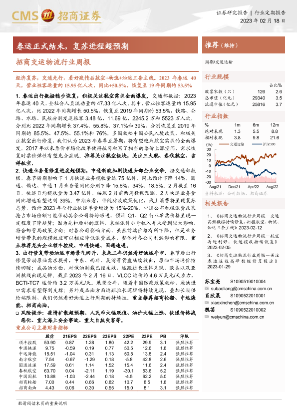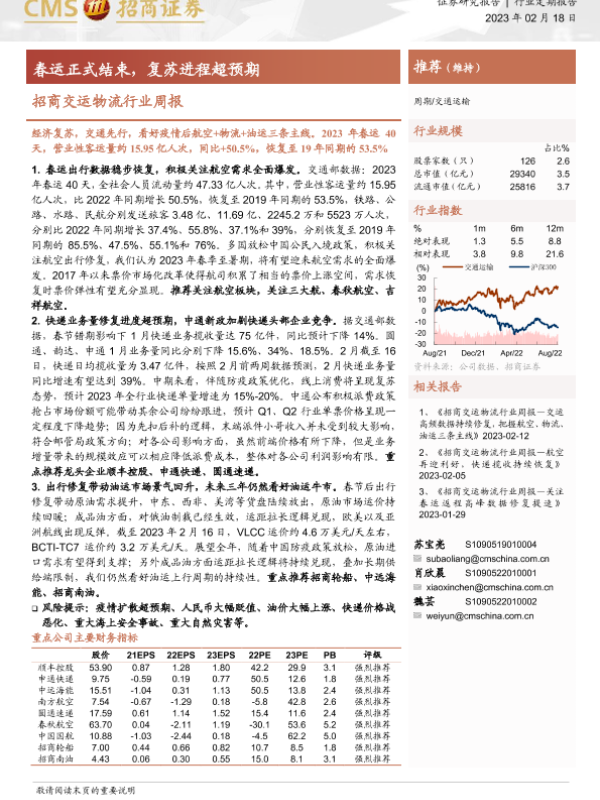 【海通证券】【20230218】招商交运物流行业周报:春运正式结束,复苏进程超预期-17页