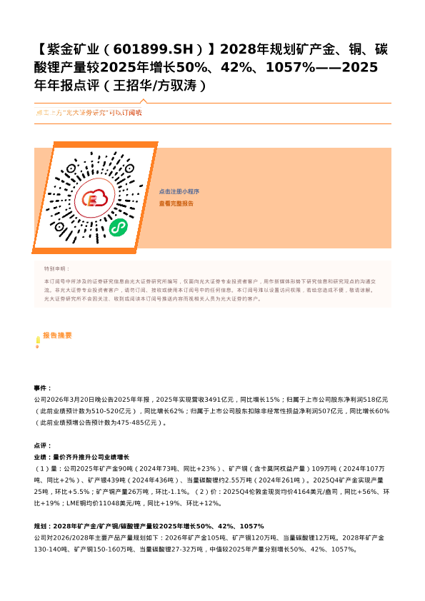 产量规划 矿产金 矿产铜 紫金矿业 碳酸锂
