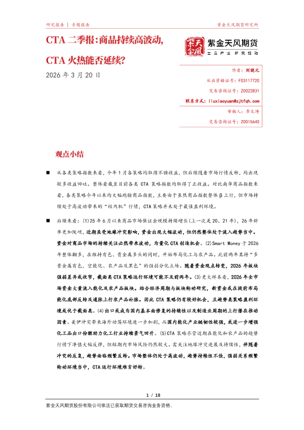 【紫金天风期货】【202603】CTA二季报:商品持续高波动,CTA火热能否延续?-18页