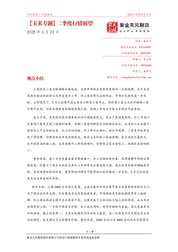 【紫金天风期货】【202503】玉米专题_二季度行情展望-9页