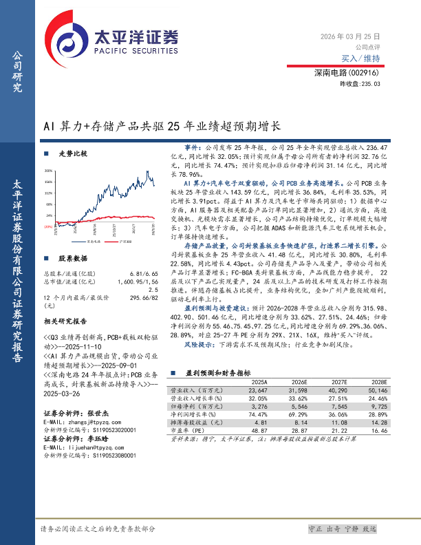 【太平洋证券】【202603】AI算力+存储产品共驱25年业绩超预期增长-4页