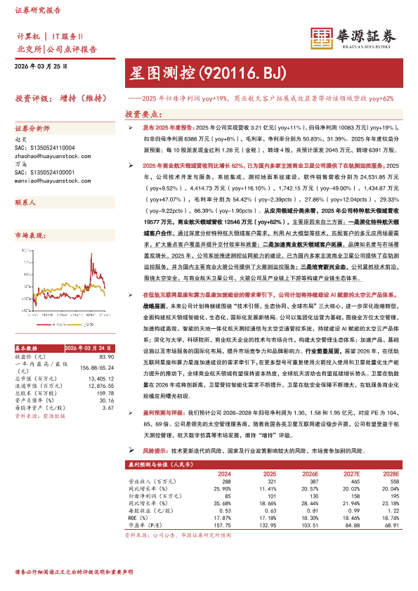 太空管理 卫星测控 增持评级 商业航天 盈利预测