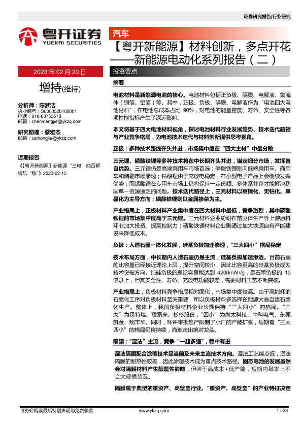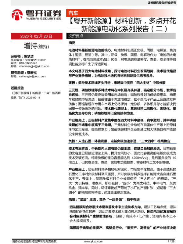 【粤开证券】【20230220】材料创新,多点开花——新能源电动化系列报告(二)-28页