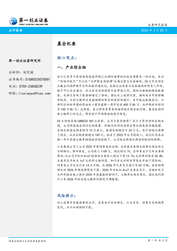 【第一创业证券】【202603】晨会纪要-3页