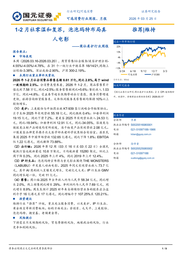 【国元证券】【202603】商社美护行业周报:1-2月社零温和复苏,泡泡玛特布局真e人电影-9页