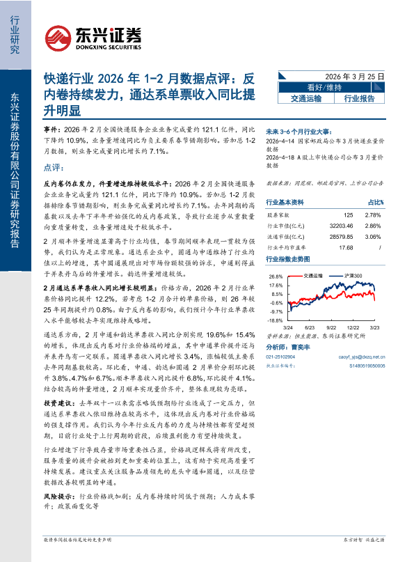 【东兴证券】【202603】快递行业2026年1-2月数据点评:反内卷持续发力,通达系单票收入同比提升明显-9页