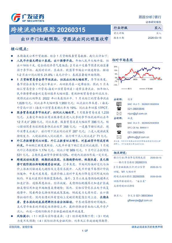 【广发证券】【202603】银行业跨境流动性跟踪:出口开门红超预期,货服流出同比明显收窄-27页