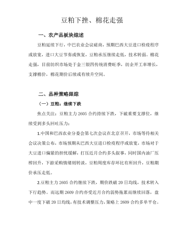 【天富期货有限公司】【202603】豆粕下挫、棉花走强-7页