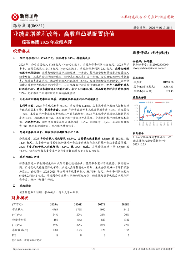 【浙商证券】【202603】业绩高增盈利改善,高股息凸显配置价值——绿茶集团 2025年业绩点评-3页