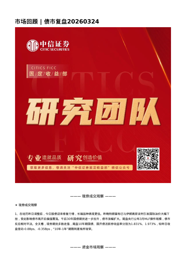资金市场 债市复盘 期限利差 MLF操作 现券成交