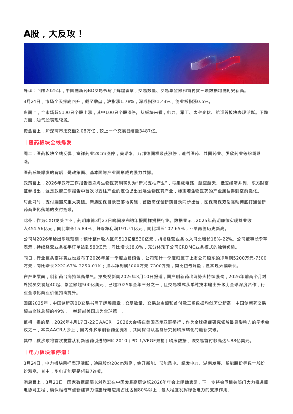 A股 电力板块 政策利好 生物医药 创新药
