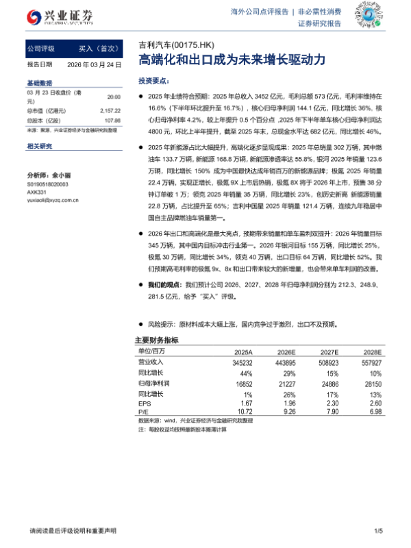 高端化战略 投资评级 出口增长 新能源汽车 汽车行业