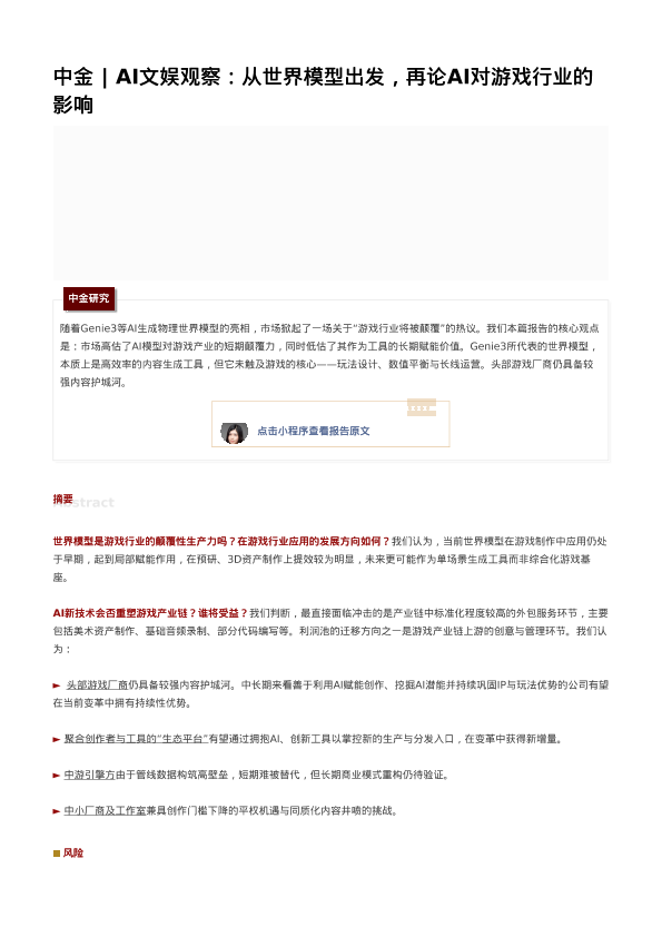 【中金公司】【202603】AI文娱观察:从世界模型出发,再论AI对游戏行业的影响-13页