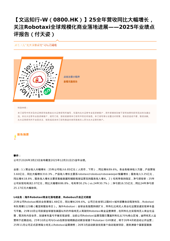 【光大证券】【202603】25全年营收同比大幅增长,关注Robotaxi全球规模化商业落地进展——2025年业绩点评报告-2页