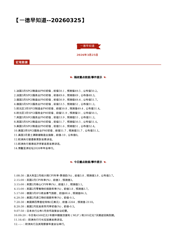 宏观数据 有色金属 金融期货 贵金属 黑色品种
