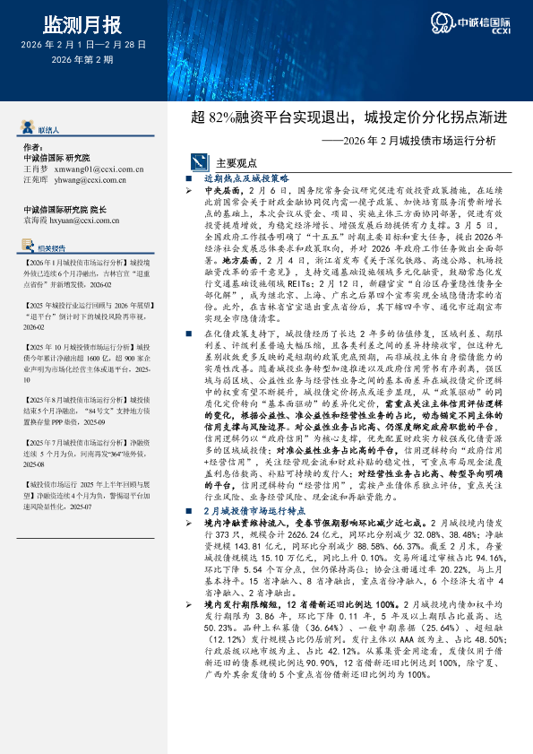 【中诚信国际】【202602】超 82%融资平台实现退出,城投定价分化拐点渐进-15页