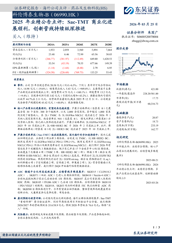 【东吴证券】【202603】科伦博泰生物-B(06990.HK)2025年业绩公告点评:Sac-TMT商业化进展顺利,创新管线持续纵深推进-3页