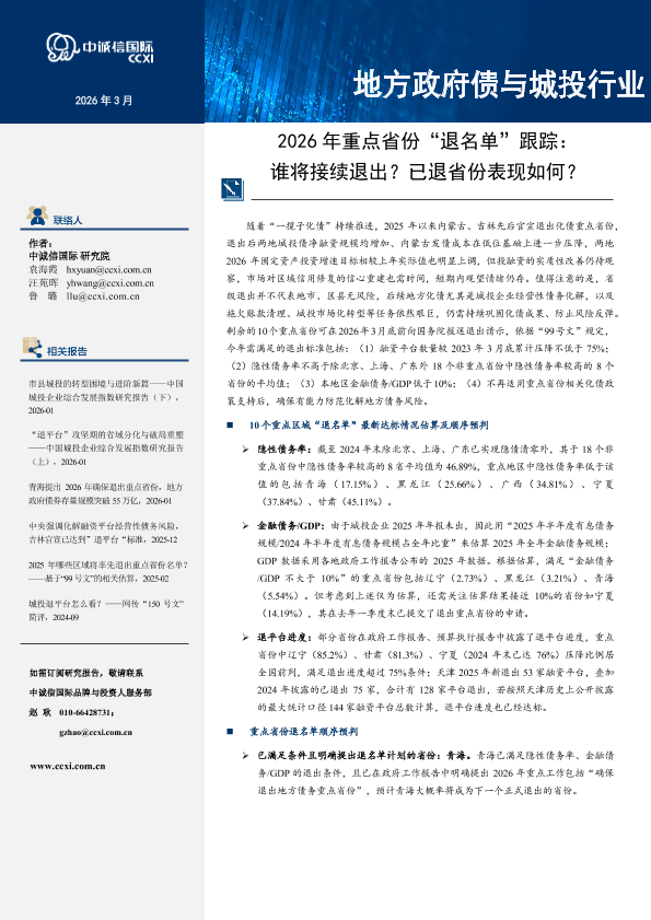 【中诚信国际】【202603】2026年重点省份“退名单”跟踪:谁将接续退出?已退省份表现如何?-13页