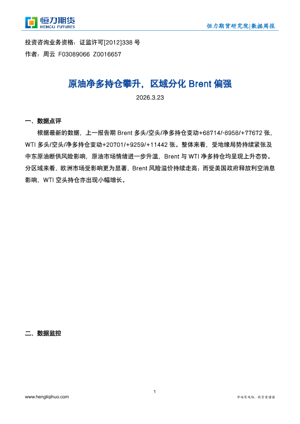 【恒力期货】【202603】原油净多持仓攀升_区域分化Brent偏强-4页