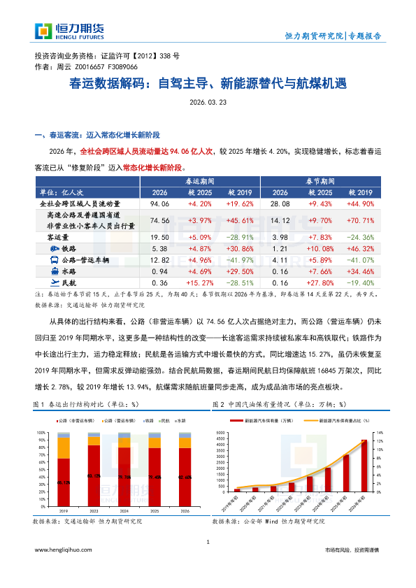 【恒力期货】【202603】春运数据解码:自驾主导、新能源替代与航煤机遇-6页