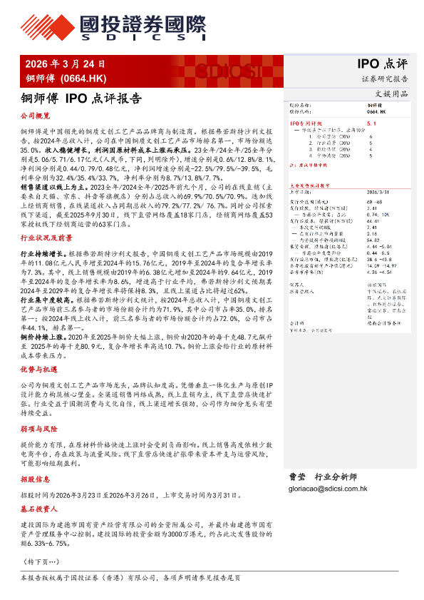 【国投证券(香港)有限公司】【202603】铜师傅 IPO点评报告-3页