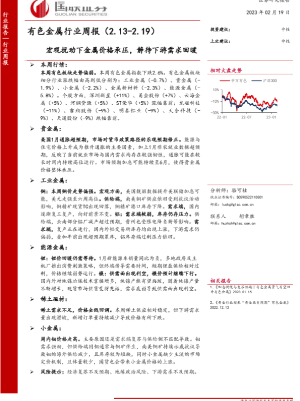 【国联证券】【20230219】有色金属行业周报:宏观扰动下金属价格承压,静待下游需求回暖-14页