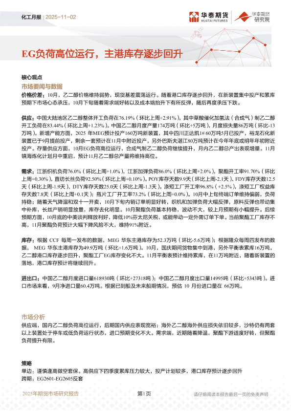 进出口 库存数据 乙二醇 化工行业 供需分析