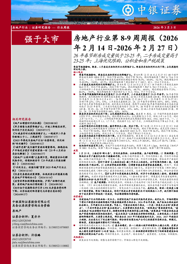 【中银证券】【202603】房地产行业第8-9周周报(2026 年 2月 14日-2026年 2月 27日)-23页