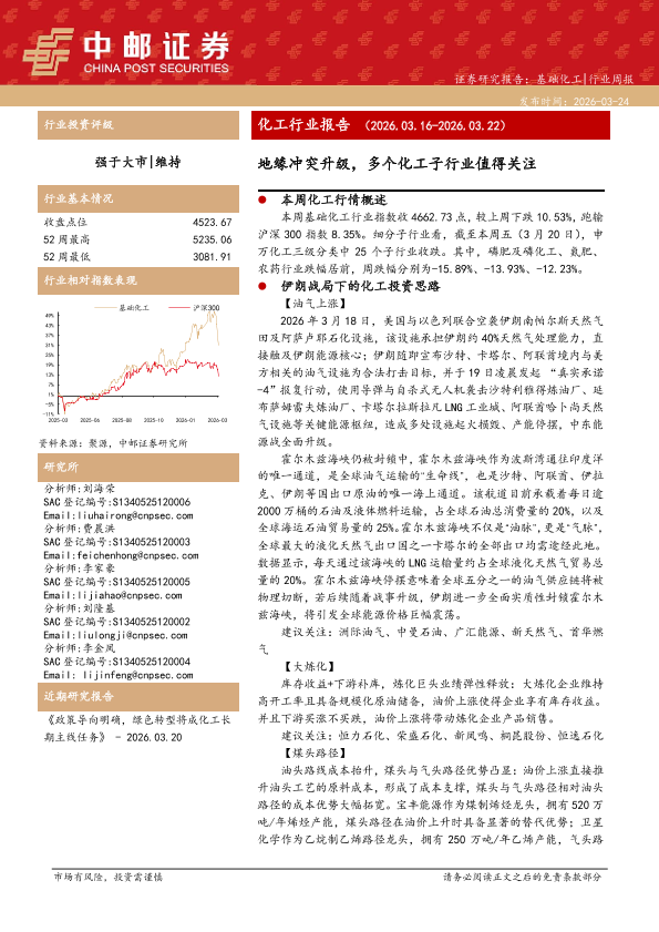 【中邮证券】【202603】基础化工|行业周报:地缘冲突升级,多个化工子行业值得关注-42页