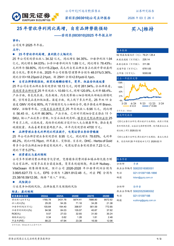 【国元证券】【202603】25年营收净利同比高增,自有品牌势能强劲-3页