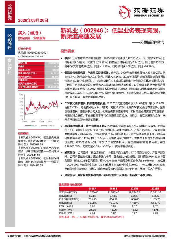【东海证券】【202603】新乳业(002946):低温业务表现亮眼,新渠道高速发展——公司简评报告-3页