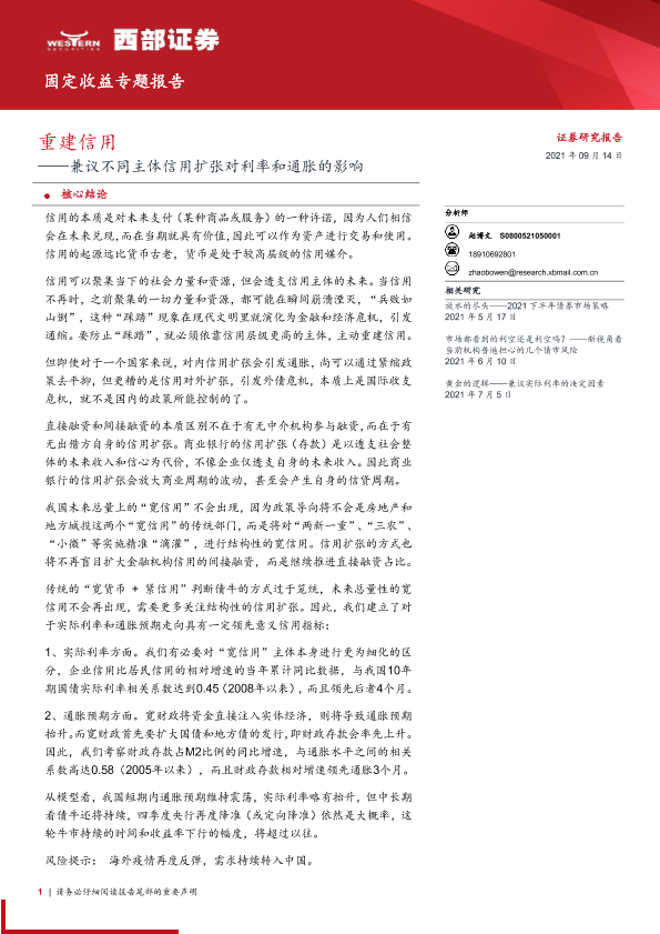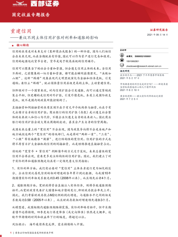 【西部证券】【20210914】固定收益专题报告:兼议不同主体信用扩张对利率和通胀的影响,重建信用-27页