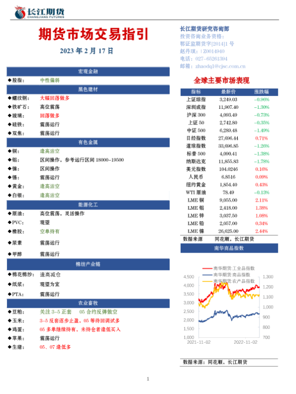 交易指引 宏观经济 有色金属 期货市场 能源化工