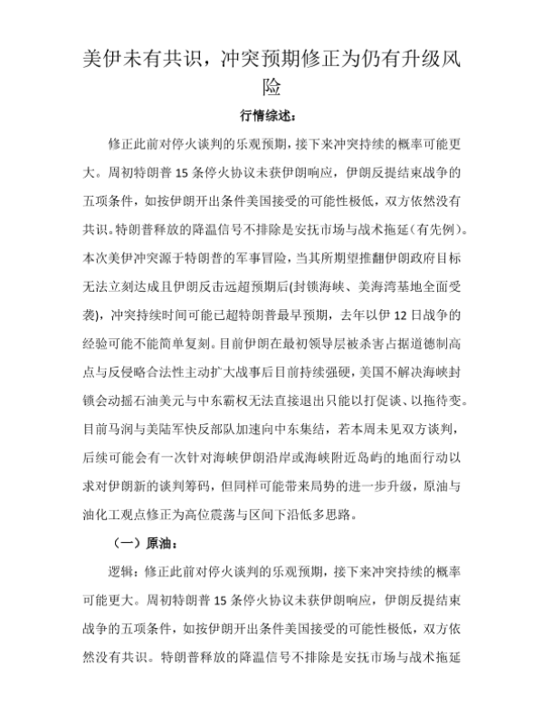 【天富期货有限公司】【202603】美伊未有共识,冲突预期修正为仍有升级风险-14页