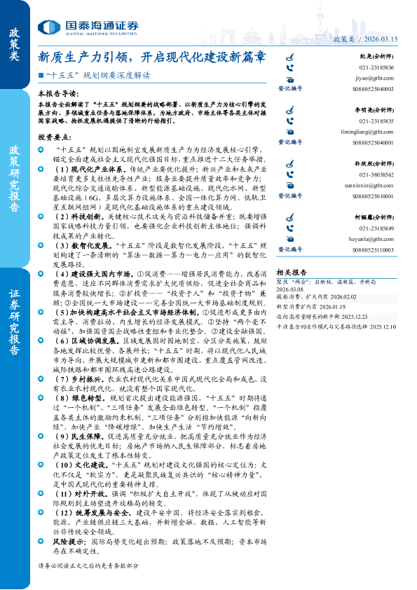 【国泰海通证券研究所】【202603】“十五五”规划纲要深度解读:新质生产力引领,开启现代化建设新篇章-43页
