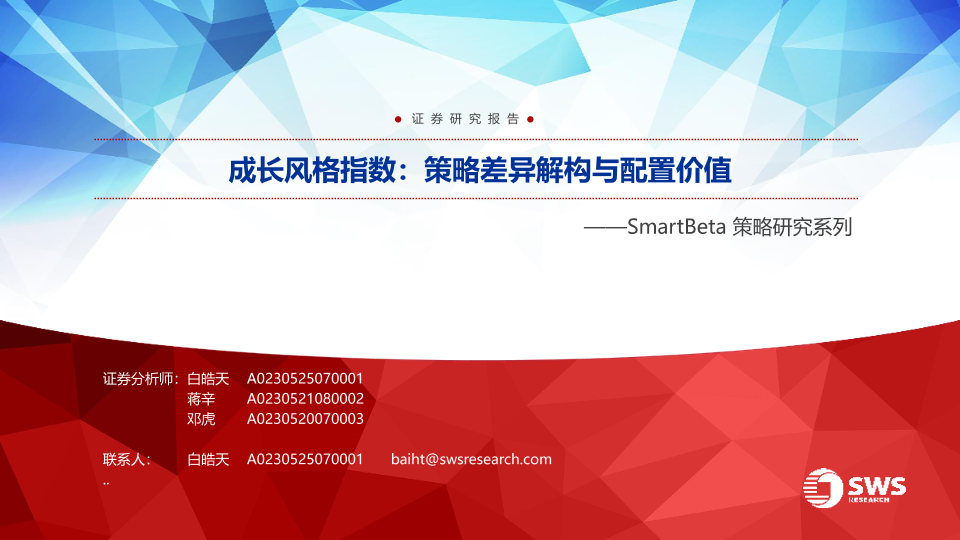 【申银万方证券研究所有有限公司】【20260324】SmartBeta策略研究系列:成长和风险的平衡-成长风格指数,2026年03月20日更新-36页