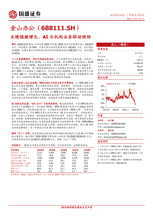 【国盛证券】【202603】金山办公-688111.SH-业绩稳健增长_AI与机构业务驱动强劲-3页