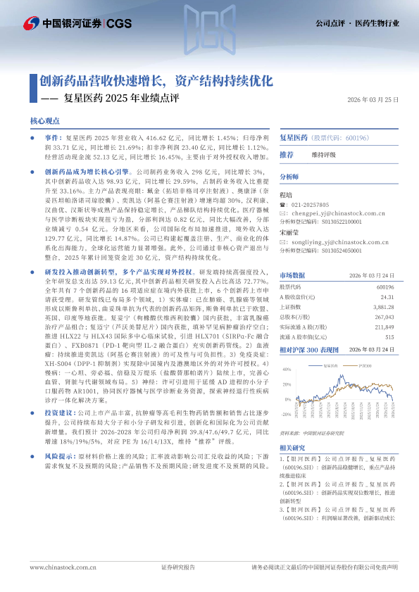 【银河证券】【202603】复星医药2025年业绩点评_创新药品营收快速增长_资产结构持续优化-4页