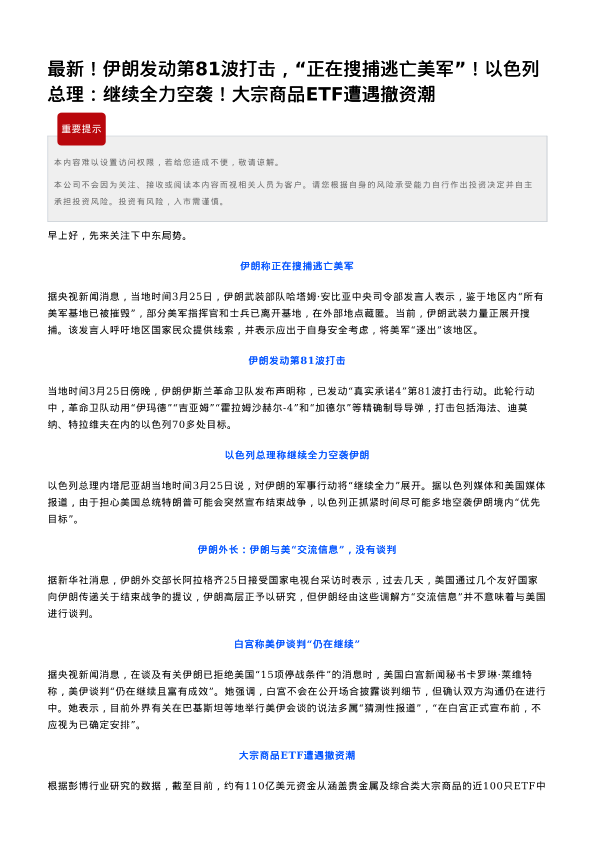 【瑞达期货】【202403】最新!伊朗发动第81波打击,“正在搜捕逃亡美军”!以色列 总理:继续全力空袭!大宗商品ETF遭遇撤资潮-3页